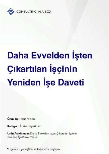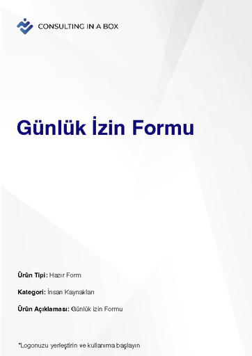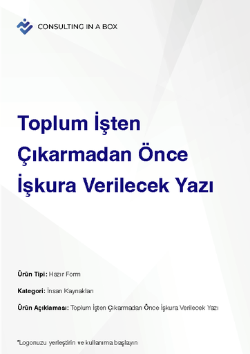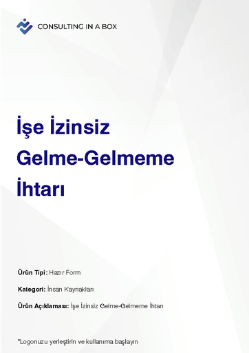 Şablonlar Finansal Analiz Şablonu599 ₺ RACI Matrisi Şablonu750 ₺Formlar Toplantı Tutanağı Örneği290 ₺ Daha Evvelden İşten Çıkartılan İşçinin Yeniden İşe Daveti300 ₺ Doğum Yapan Kadının Emzirme İzin Talep Dilekçesi300 ₺ Fazla Mesai Onay Belgesi300 ₺ Günlük İzin Formu300 ₺ Hizmet Akdi Fesih Bildirimi300 ₺ İbraname300 ₺ İkale Sözleşmesi Örneği300 ₺ İş Başvurusu ve Bilgi Formu300 ₺ İş Kazası Tutanağı300 ₺ İş Kazasının SGK'ya Bildirimi300 ₺ İşe İzinsiz Gelme-Gelmeme İhtarı300 ₺ İşe İzinsiz Gelmeme - Geç Gelme Tutanağı300 ₺ İşe Mazeretsiz Olarak Gelmeyen İşçiye Tebligat Örneği300 ₺ İstifa Dilekçesi300 ₺ Kişisel Koruyucu Donanım Zimmet Tutanağı300 ₺ Prim Performans Yönetim Sistemi3.900 ₺ Proje Başlatma Formu450 ₺ Rekabet ve Gizlilik Sözleşmesi Örneği600 ₺ Saatlik izin Formu300 ₺ Toplu İşten Çıkarmadan Önce İşkura Verilecek Yazı300 ₺Sepete Ekle Proje Başlatma Formu 450₺